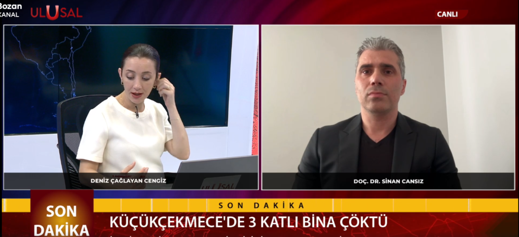 Doç. Dr. Sinan CANSIZ uzmanlık alanı olan Yapı Mühendisliği, Deprem, Kentsel Dönüşüm ve Yapı Güvenliği alanlarında çok sayıda ulusal kanalda yayınlara katılmıştır. Bu canlı yayınlarda özellikle İstanbul’un deprem riski ve kentsel dönüşümün önemi vurgulanarak İstanbul’da yaşayan vatandaşlarımızın bilinçlenmesine önemli katkı sunulmuştur.